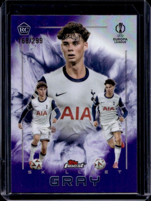 The Archie Gray 2024 Topps Finest UEFA Club Competitions #SK-7 Finest Skillset - Purple Refractor /299 Rookie card is 1 of 54 Archie Gray's card variations in the 2024 Topps Finest UEFA Club Competitions set being tracked by Sports Card Investor, including Base, Refractor, Purple Refractor /299, Sky Blue Refractor /275, and Pink RayWave Refractor /250.