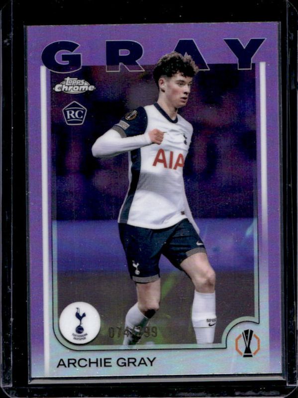The Archie Gray 2024 Topps UEFA Club Competitions #170 Purple Inferno /299 Rookie card is 1 of 38 Archie Gray's card variations in the 2024 Topps UEFA Club Competitions set being tracked by Sports Card Investor, including Base, Black Flowfractor, Golden Flowfractor, Green Flowfractor, and Northern Lights.