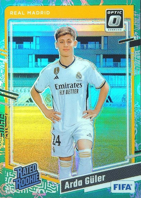 The Arda Guler 2023 Donruss #184 Optic - Dragon Scale /8 Rookie card in Raw condition has not changed in price in the last 30 days and was last sold for $380.00 .