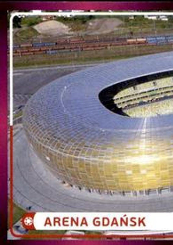 The Arena Gdansk 2012 UEFA Euro Stickers #8 Base card is 1 of 5 Arena Gdansk's card variations in the 2012 UEFA Euro Stickers set being tracked by Sports Card Investor, including #9 Base, #6 German, #8 German, and #9 German.