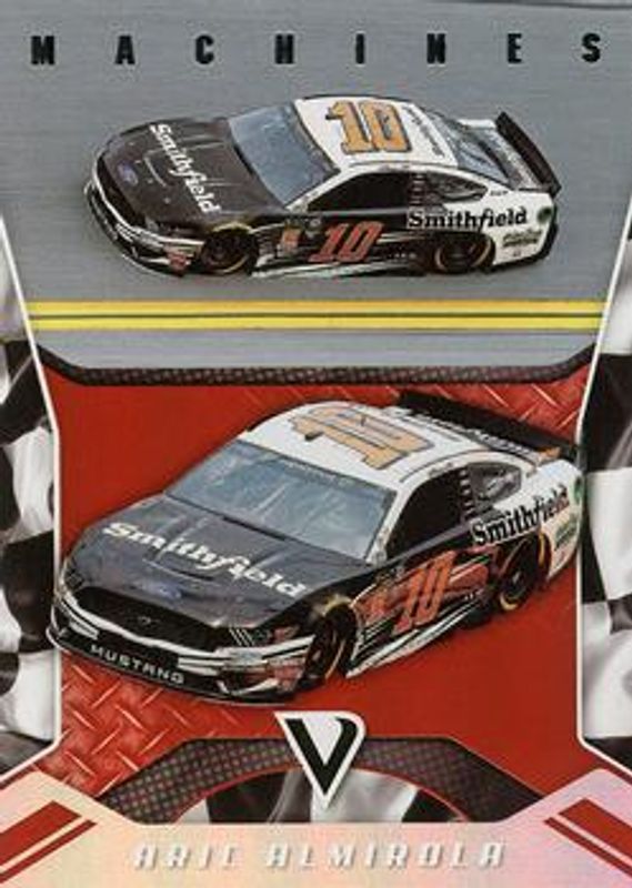 The Aric Almirola 2019 Victory Lane NASCAR #M19 Machines card is 1 of 69 Aric Almirola's card variations in the 2019 Victory Lane NASCAR set being tracked by Sports Card Investor, including #8 Base, #55 Base, #55 Gold /25, #8 Gold /25, and #55 Black /1.