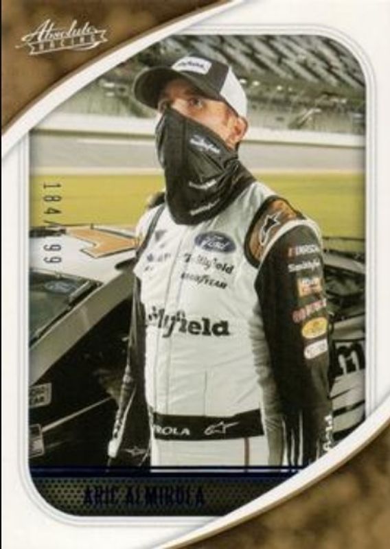 The Aric Almirola 2021 Chronicles NASCAR #16 Absolute - Blue /199 card is 1 of 86 Aric Almirola's card variations in the 2021 Chronicles NASCAR set being tracked by Sports Card Investor, including Absolute, Absolute Autographs, Chronicles Swatches, Cornerstones Materials Signatures, and Crusade.