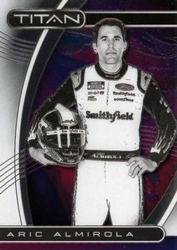 The Aric Almirola 2021 Chronicles NASCAR #18 Titan card is 1 of 86 Aric Almirola's card variations in the 2021 Chronicles NASCAR set being tracked by Sports Card Investor, including Absolute, Absolute Autographs, Chronicles Swatches, Cornerstones Materials Signatures, and Crusade.