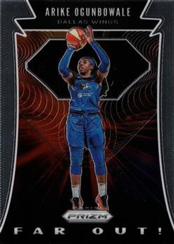 The Arike Ogunbowale 2020 Prizm WNBA #1 Far Out card is 1 of 53 Arike Ogunbowale's card variations in the 2020 Prizm WNBA set being tracked by Sports Card Investor, including Base, Green, Green Ice, Hyper, and Ice.