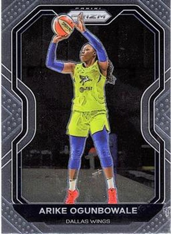 The Arike Ogunbowale 2021 Prizm WNBA #79 Base card is 1 of 78 Arike Ogunbowale's card variations in the 2021 Prizm WNBA set being tracked by Sports Card Investor, including Green, Green Ice, Hyper, Ice, and Ruby Wave.