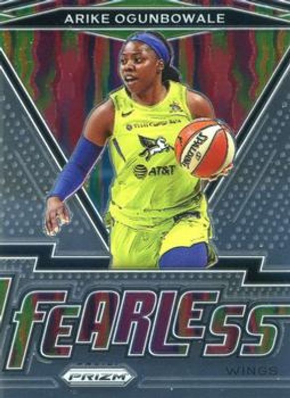 The Arike Ogunbowale 2021 Prizm WNBA #10 Fearless card is 1 of 78 Arike Ogunbowale's card variations in the 2021 Prizm WNBA set being tracked by Sports Card Investor, including Base, Green, Green Ice, Hyper, and Ice.