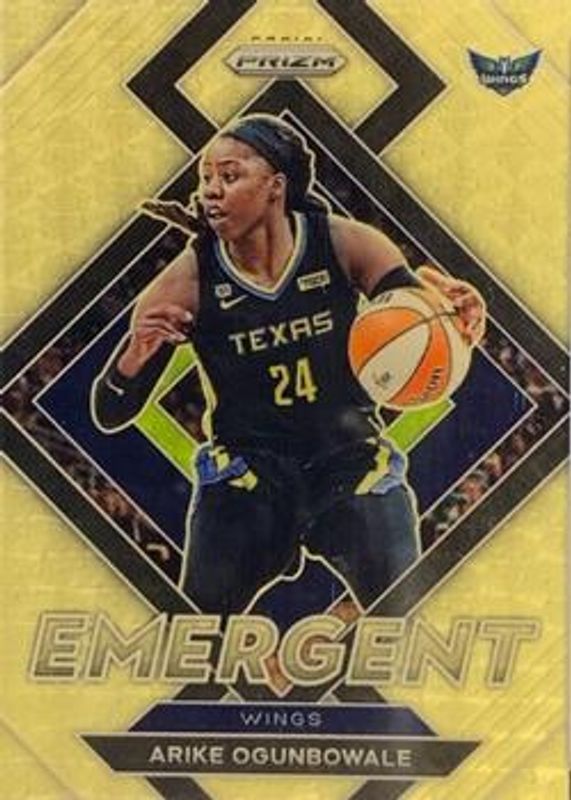 The Arike Ogunbowale 2022 Prizm WNBA #3 Emergent - Gold Vinyl /1 card is 1 of 63 Arike Ogunbowale's card variations in the 2022 Prizm WNBA set being tracked by Sports Card Investor, including Base, Green, Green Ice, Hyper, and Ice.