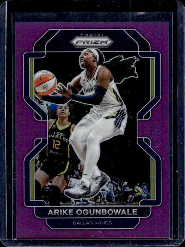 The Arike Ogunbowale 2022 Prizm WNBA #139 Purple /99 card is 1 of 63 Arike Ogunbowale's card variations in the 2022 Prizm WNBA set being tracked by Sports Card Investor, including Base, Green, Green Ice, Hyper, and Ice.