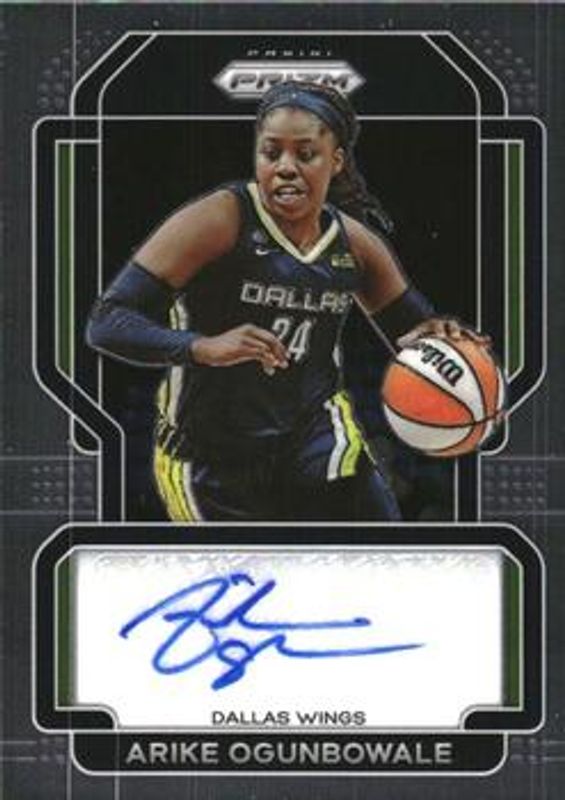 The Arike Ogunbowale 2022 Prizm WNBA #SG-AOG Signatures card is 1 of 63 Arike Ogunbowale's card variations in the 2022 Prizm WNBA set being tracked by Sports Card Investor, including Base, Green, Green Ice, Hyper, and Ice.