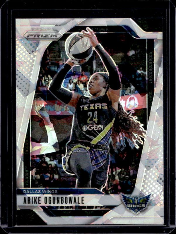 The Arike Ogunbowale 2024 Prizm WNBA #28 White Ice /35 card is 1 of 44 Arike Ogunbowale's card variations in the 2024 Prizm WNBA set being tracked by Sports Card Investor, including Base, Blue Velocity, Checkerboard, Green, and Ice.