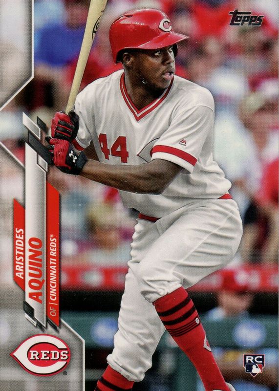 This card is 1 of 3 Aristides Aquino's card variations in the 2020 Topps set being tracked by Sports Card Investor, including Rainbow Foil, and Gold /2020.