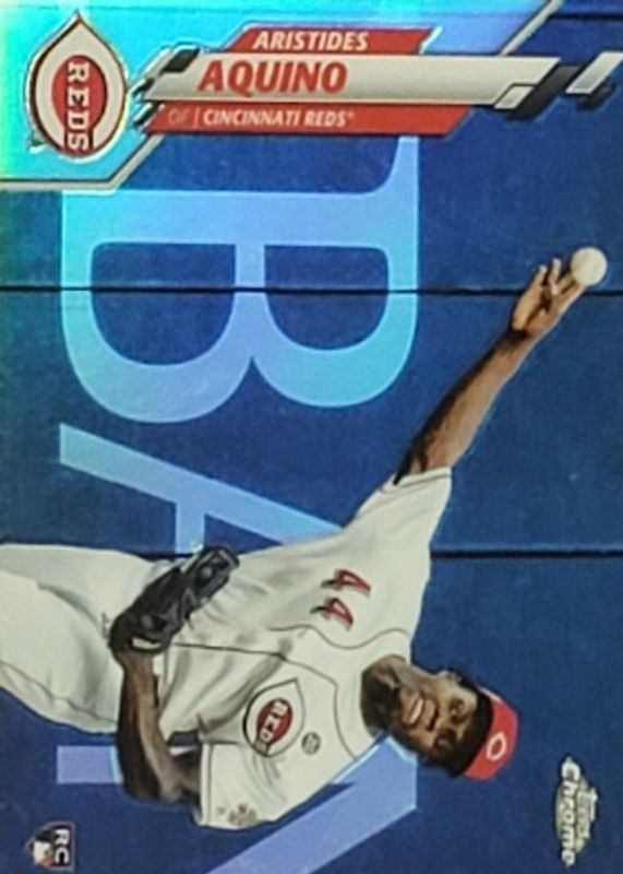 This card is 1 of 20 Aristides Aquino's card variations in the 2020 Topps Chrome set being tracked by Sports Card Investor, including Base, Negative Refractor, Pink Refractor, Prism Refractor, and Refractor.