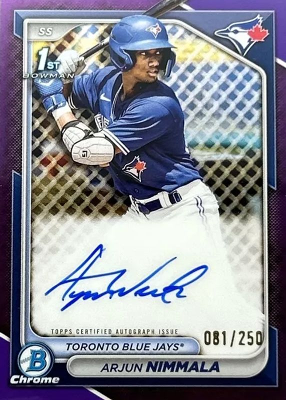 2024 Bowman 1st ARJUN NIMMALA Chrome Purple Refractor Auto /250 - Blue Jays
