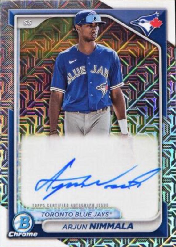 2024 Bowman Chrome Prospect Auto Mojo Refractors #BMA-AN Arjun Nimmala Blue Jays