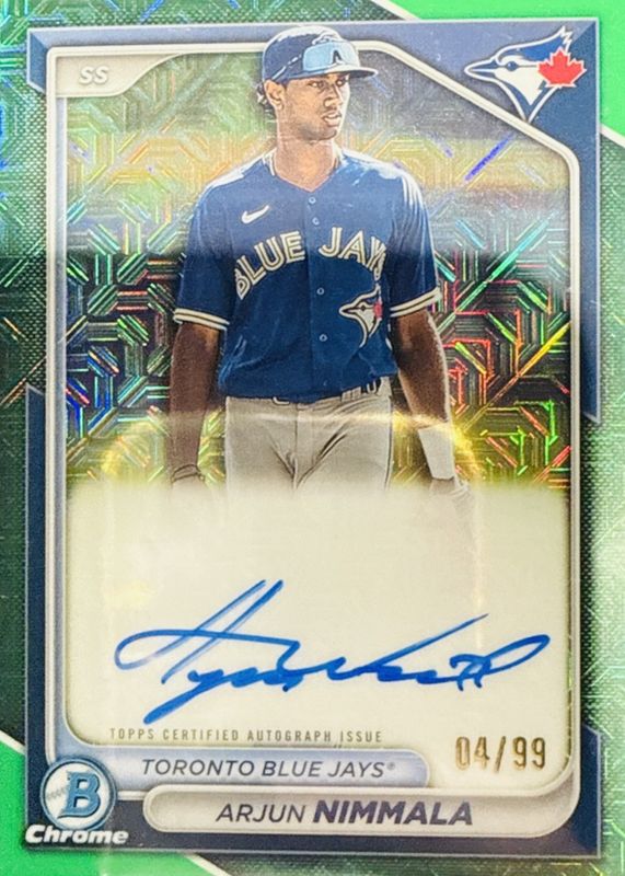 Arjun Nimmala 2024 Bowman Mega Box #BMA-AN Chrome Prospect Auto - Green Refractor /99 RAW Price Guide