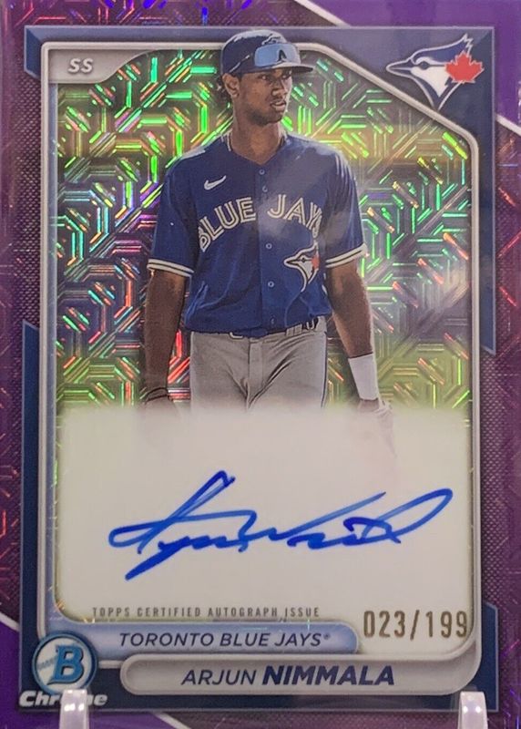 2024 Bowman Chrome Arjun Nimmala Purple Mojo Refractor Auto /199 #BMA-AN Jays