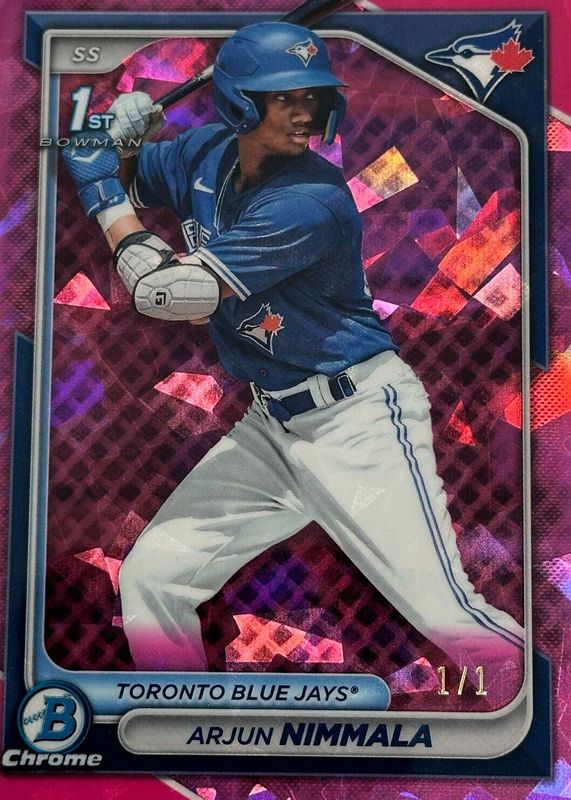 The Arjun Nimmala 2024 Bowman Sapphire Edition #BCP-142 Padparadscha /1 (1st) card in Raw condition has not changed in price in the last 30 days and was last sold for $1,713.00 .