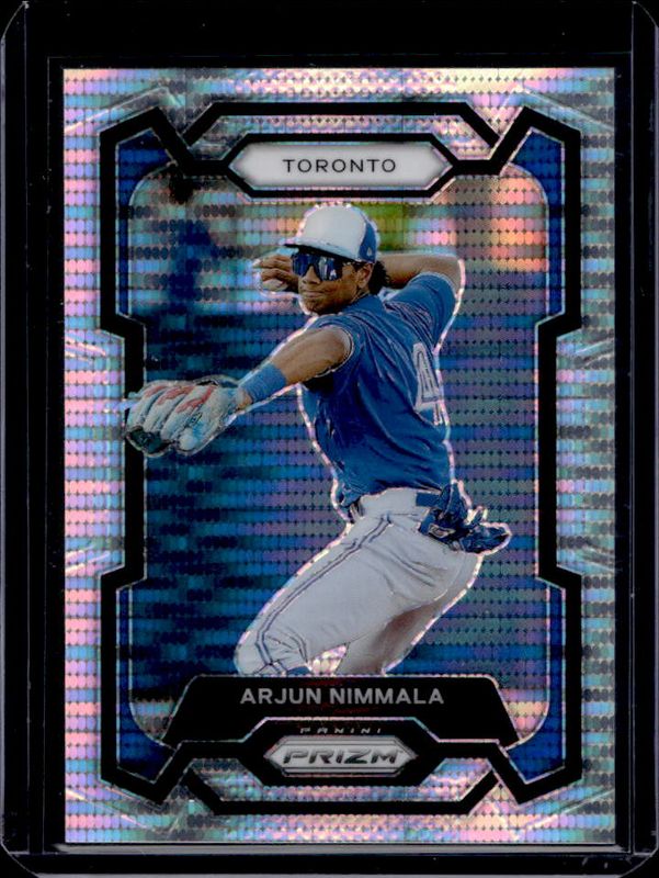 The Arjun Nimmala 2024 Prizm #232 Pulsar /499 card is 1 of 62 Arjun Nimmala's card variations in the 2024 Prizm set being tracked by Sports Card Investor, including Base, Blue Ice, Green, Green Ice, and Pink Ice.
