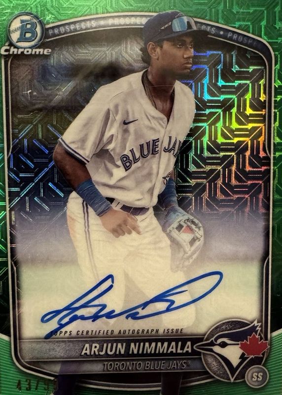 2025 Arjun Nimmala Bowman Chrome Green Mojo Refractor Auto /99 #BMA-AN Blue Jays