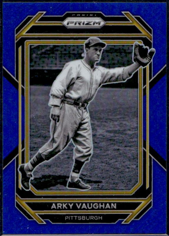 The Arky Vaughan 2023 Prizm #222 Blue /149 card is 1 of 30 Arky Vaughan's card variations in the 2023 Prizm set being tracked by Sports Card Investor, including Base, Blue Ice, Giraffe, Green Ice, and Hyper.