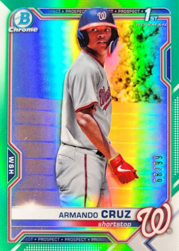 Auctions Ending Soon for Armando Cruz 2021 Bowman Chrome #BCP-247 Prospects - Green Refractor /99 (1st) RAW
