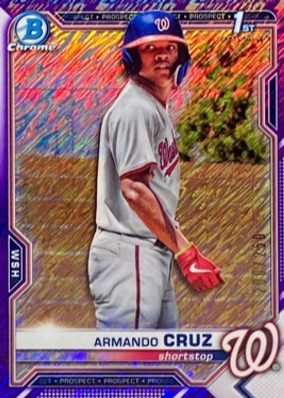 Auctions Ending Soon for Armando Cruz 2021 Bowman Chrome #BCP-247 Prospects - Purple Shimmer Refractor /250 (1st) RAW