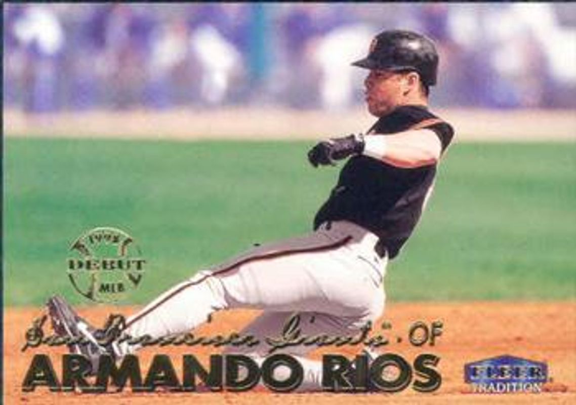 The Armando Rios 1999 Fleer Tradition #274 Base Rookie card is 1 of 4 Armando Rios' card variations in the 1999 Fleer Tradition set being tracked by Sports Card Investor, including Millennium, Warning Track Collection, and Starting 9 /9.