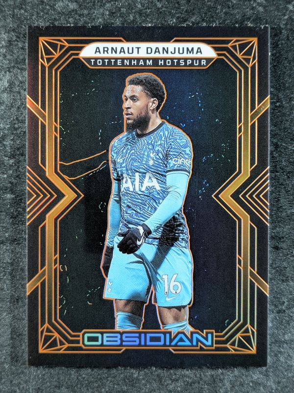 The Arnaut Danjuma 2022 Obsidian #35 Electric Etch Orange /40 card is 1 of 13 Arnaut Danjuma's card variations in the 2022 Obsidian set being tracked by Sports Card Investor, including Base /115, Electric Etch Red Pulsar /30, Electric Etch Purple Flood /25, Electric Etch Blue /20, and Electric Etch Neon Blue Flood /12.