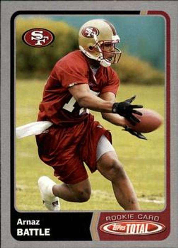 The Arnaz Battle 2003 Topps Total #449 Silver Rookie card is 1 of 2 Arnaz Battle's card variations in the 2003 Topps Total set being tracked by Sports Card Investor, including Base.