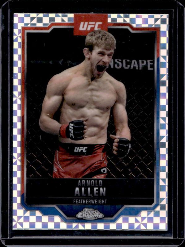 The Arnold Allen 2025 Topps Chrome UFC #25 X-Fractor card is 1 of 63 Arnold Allen's card variations in the 2025 Topps Chrome UFC set being tracked by Sports Card Investor, including Base, Geometric Refractor, Negative Refractor, Prism Refractor, and Purple Refractor.