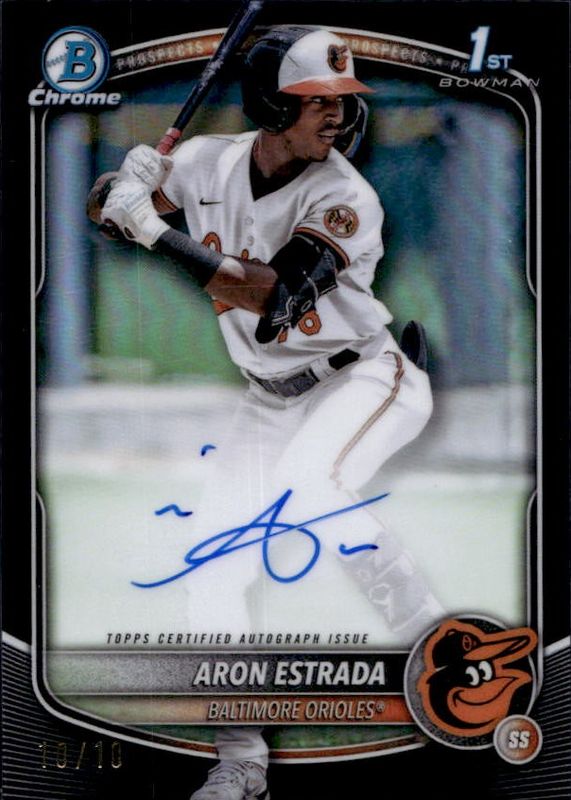 Auctions Ending Soon for Aron Estrada 2025 Bowman #CPA-AES Chrome Prospect Auto - Black Refractor /10 (1st) RAW