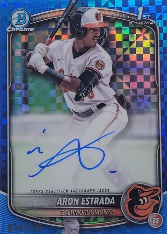ARON ESTRADA 2025 BOWMAN CHROME 1ST BLUE X-FRACTOR ORIOLES AUTO /150 Q5511