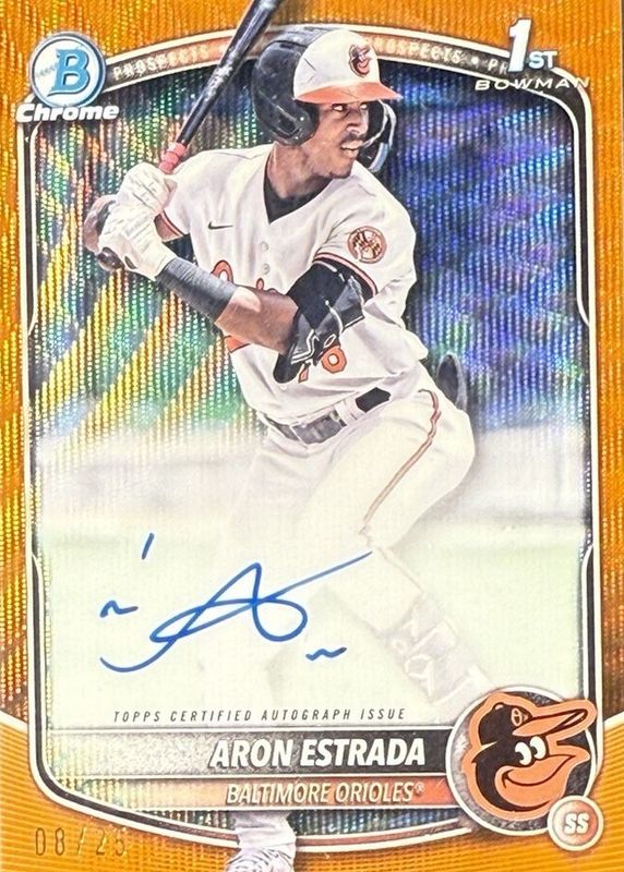 2025 Bowman Aron Estrada Auto Orange Wave /25 Chrome 1st Orioles CPA-AES