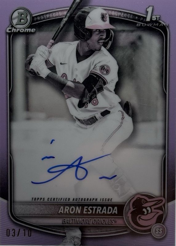 Auctions Ending Soon for Aron Estrada 2025 Bowman #CPA-AES Chrome Prospect Auto - Pearl Refractor /10 (1st) RAW