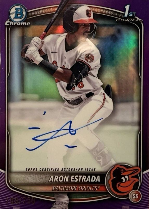 2025 Bowman ARON ESTRADA 169/250 1st Auto Purple Refractor Chrome Prospect SP
