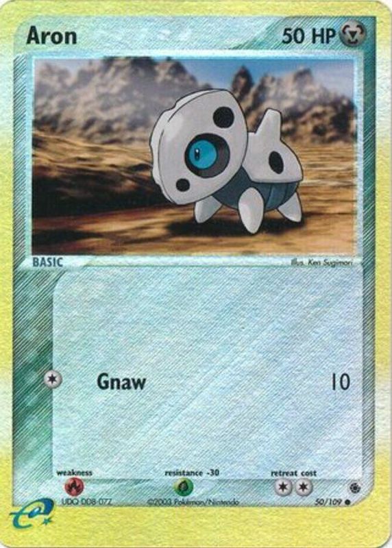 This card is 1 of 6 Aron's card variations in the 2003 EX: Ruby & Sapphire set being tracked by Sports Card Investor, including #025/109 Base, #049/109 Base, #050/109 Base, #025/109 Reverse Holo, and #049/109 Reverse Holo.