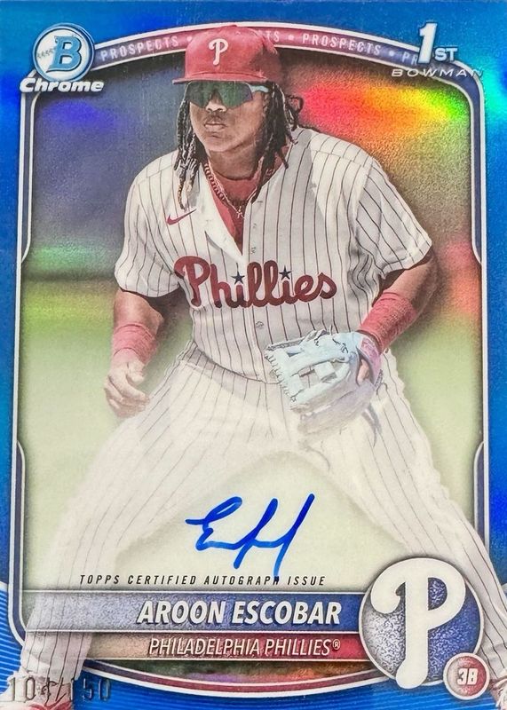 Auctions Ending Soon for Aroon Escobar 2025 Bowman #CPA-AE Chrome Prospect Auto - Blue Refractor /150 (1st) RAW