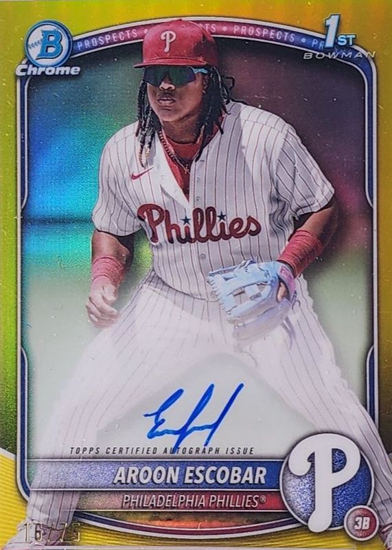 2025 Aroon Escobar 1st Bowman Chrome Auto Yellow /75 Phillies