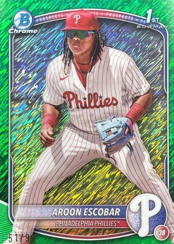 Aroon Escobar 2025 Bowman Chrome 1st Green Shimmer Refractor RC Phillies /99 C94
