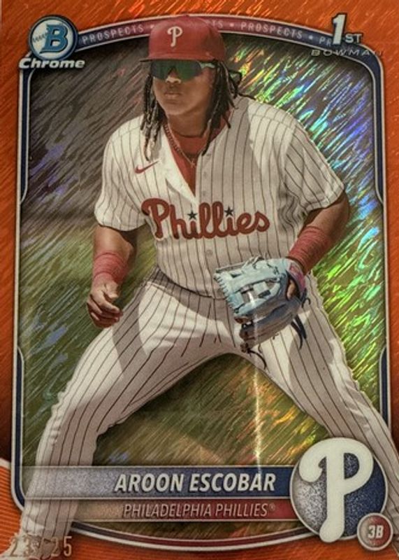 2025 Bowman Chrome Orange Shimmer /25 Aroon Escobar #BCP-65 - Phillies