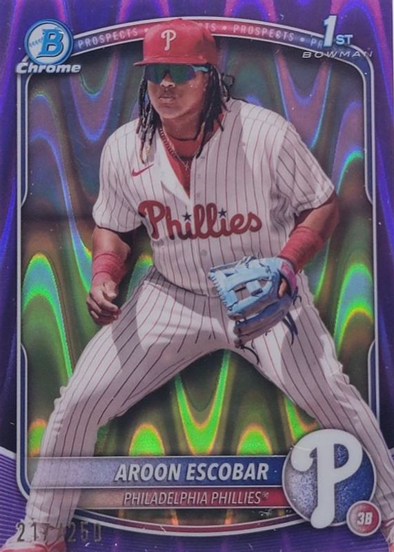 AROON ESCOBAR 2025 Bowman Chrome #BCP-65 Phillies Purple RayWave Refractor /250