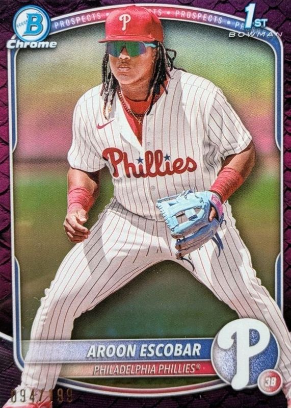 AROON ESCOBAR 2025 BOWMAN CHROME 1ST FUCHSIA REPTILIAN PHILLIES /199 Q4060