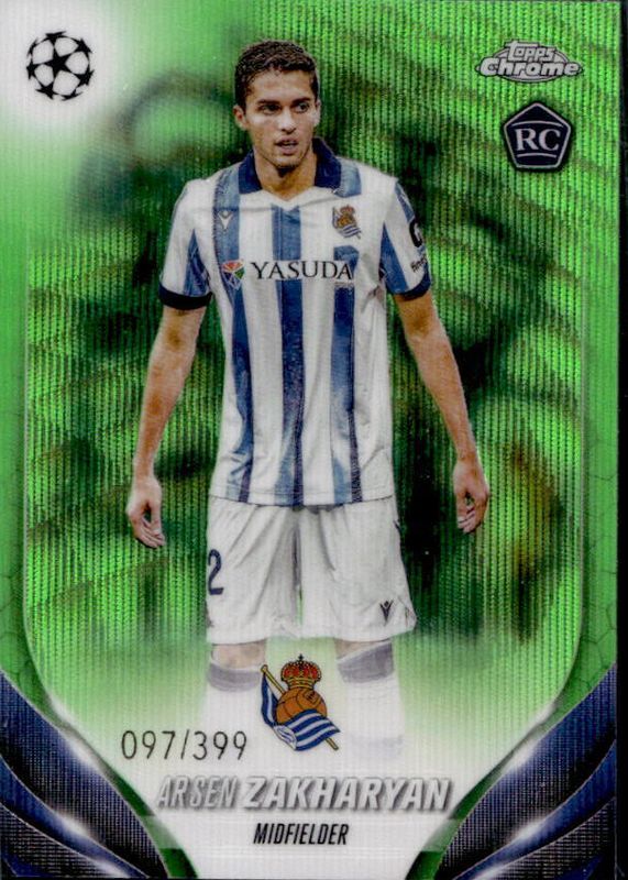 Arsen Zakharyan 2023 Topps Chrome UEFA Club Competitions #141 Neon Green Wave Refractor /399 Rookie RAW Price Guide
