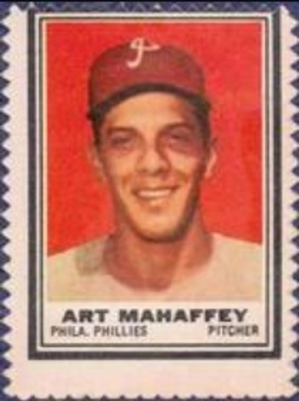 The Art Mahaffey 1962 Topps #NNO Stamps card is 1 of 2 Art Mahaffey's card variations in the 1962 Topps set being tracked by Sports Card Investor, including Base.