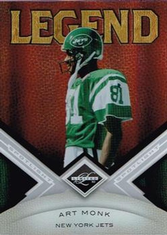 The Art Monk 2010 Limited #105 Silver Spotlight /25 card is 1 of 10 Art Monk's card variations in the 2010 Limited set being tracked by Sports Card Investor, including Base /199, Gold Spotlight /25, Platinum Spotlight /1, Threads /199, and Monikers Autographs - Gold /25.
