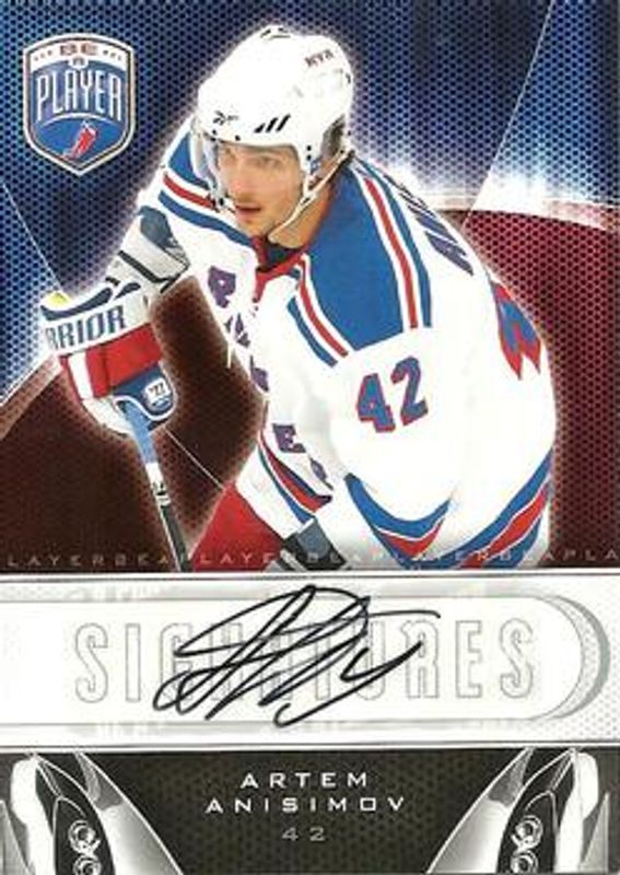 The Artem Anisimov 2009 Upper Deck Be A Player #S-AN Signatures Rookie card is 1 of 6 Artem Anisimov's card variations in the 2009 Upper Deck Be A Player set being tracked by Sports Card Investor, including Base /99, Player's Club /15, Rookie Jerseys /250, Rookie Jerseys Autographed /50, and Rookie Patches /15.