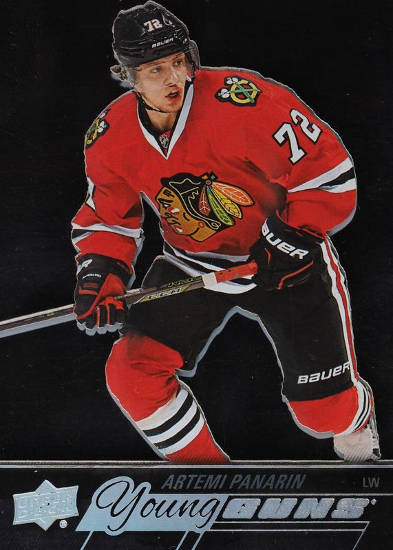 The Artemi Panarin 2015 Upper Deck #221 Young Guns - Acetate Rookie card in Raw condition has not changed in price in the last 30 days and was last sold for $252.55 .