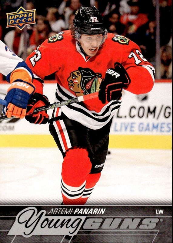 This card is 1 of 8 Artemi Panarin's card variations in the 2015 Upper Deck set being tracked by Sports Card Investor, including Young Guns Base, Young Guns Canvas, Young Guns - Acetate, Young Guns - Foil, and Young Guns - UD Exclusives /100.