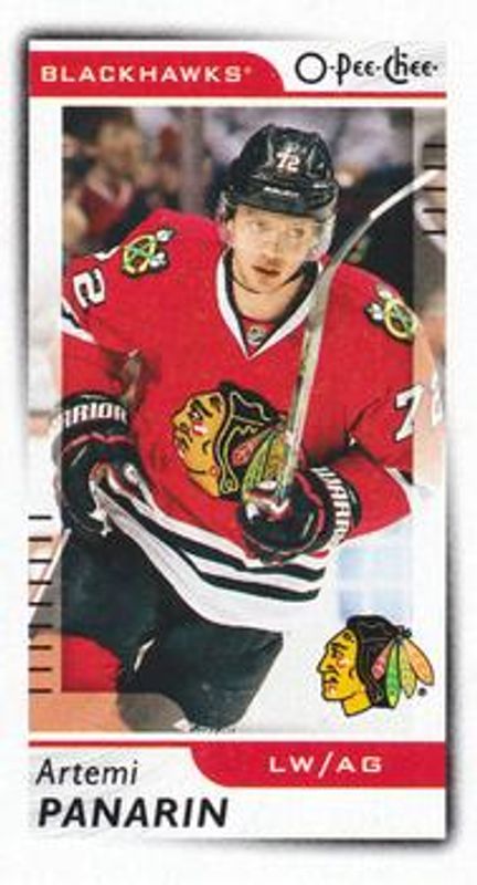 The Artemi Panarin 2017 O-Pee-Chee #M-15 Minis card is 1 of 12 Artemi Panarin's card variations in the 2017 O-Pee-Chee set being tracked by Sports Card Investor, including Base, Rainbow Foil, Red, Retro, and Retro Blank Back.