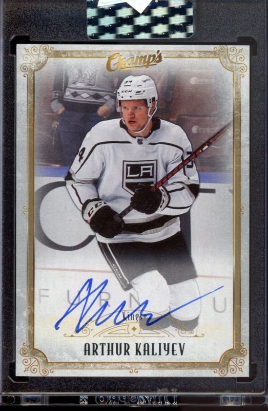 The Arthur Kaliyev 2022 Upper Deck Clear Cut #C-AK 2021 Champs card is 1 of 9 Arthur Kaliyev's card variations in the 2022 Upper Deck Clear Cut set being tracked by Sports Card Investor, including 2021 Base Set, 2021 Tribute Autos Rookies, 2022 Tribute Autos Rookies, 2021 - Exclusives /35, and 2021 Champs - Green /25.